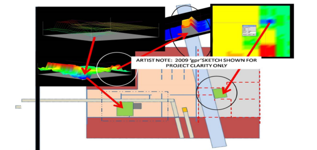 Private ground-penetrating radar (GPR) scans, unveiled subterranean anomalies